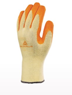 Guante VE730 de Delta Plus con recubrimiento de látex antideslizante y soporte de punto en poliéster, diseñado para alta resistencia y agarre en tareas de mantenimiento, construcción y trabajo general en entornos secos o húmedos.