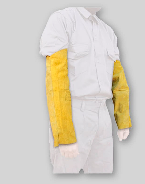 Manga de cuero Segod MD01 en cuero descarne curtido al cromo de alta resistencia, con costuras reforzadas y tira con hebilla para un ajuste seguro, ideal para protección de brazos en soldadura, trabajos industriales con chispas y calor.