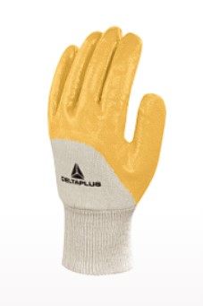 Guante de nitrilo Delta Plus NI015, recubierto 3/4 con textura de agarre, ligero y resistente para protección mecánica en trabajos de mantenimiento, automotriz y ambientes aceitosos.